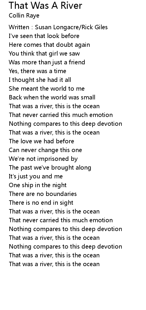 | Song | That Was A River |