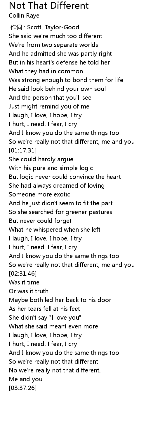 | [00:41.75] | I laugh, I love, I hope, I try |