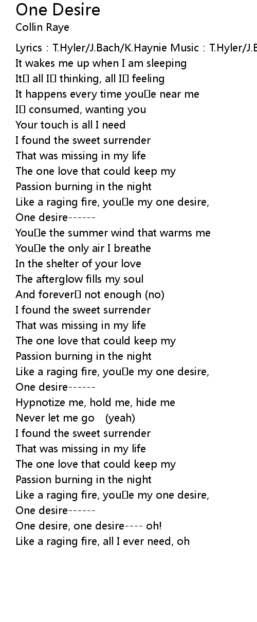 | Like a raging fire, youe my one desire, | |