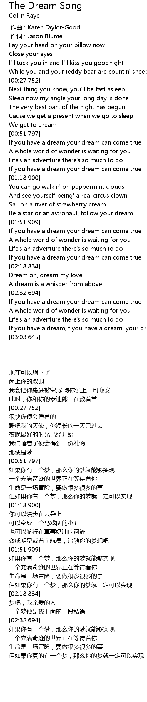 | [02:53.263] | If you have a dream,if you have a dream, your dream can come true |