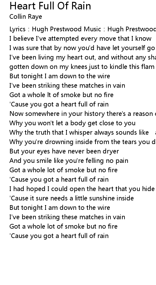 | ' Cause you got a heart full of rain | |