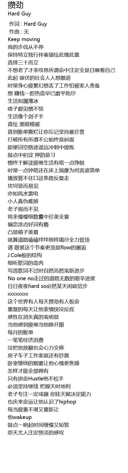 | [01:44.067] | zhǐ yǒu pīn mìng Hustle jué bù sōng shǒu |