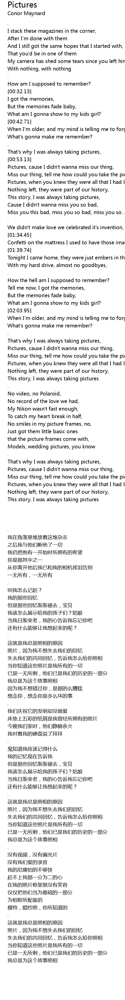 | [03:16.32] | Pictures, when you knew they were all that I had left, |