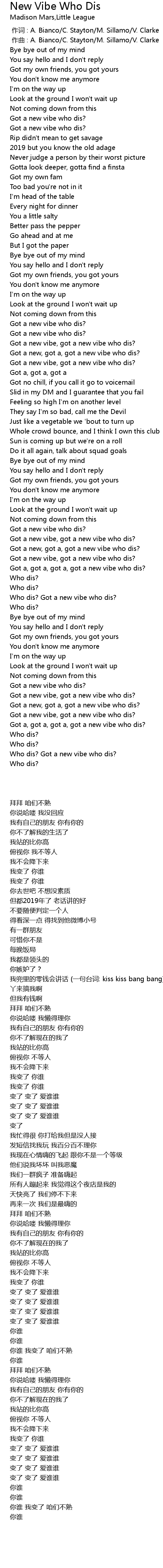 | [00:00.000] | 作词 : A. Bianco/C. Stayton/M. Sillamo/V. Clarke |
