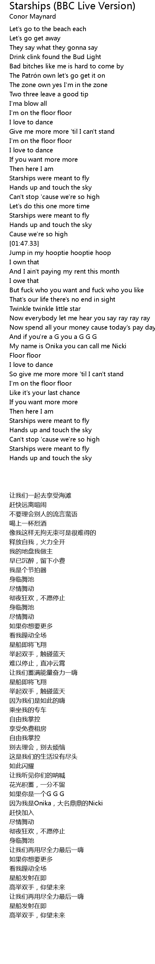 | [01:05.05] | Can' t stop ' cause we' re so high |