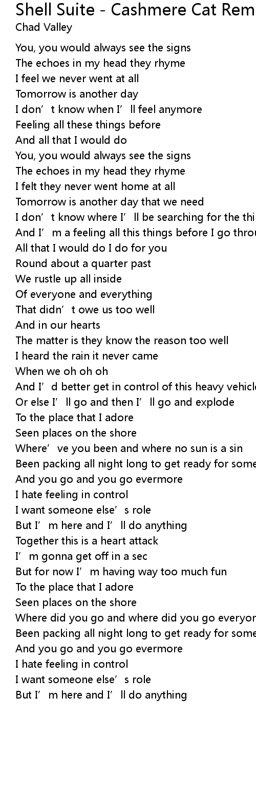 | Song | Shell Suite - Cashmere Cat Remix |