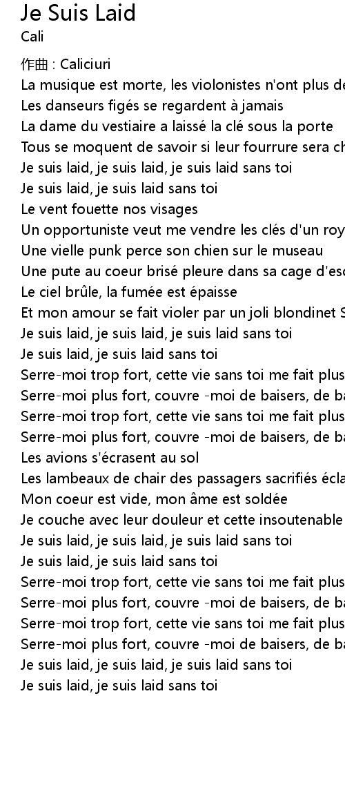 | Je suis laid, je suis laid, je suis laid sans toi | |