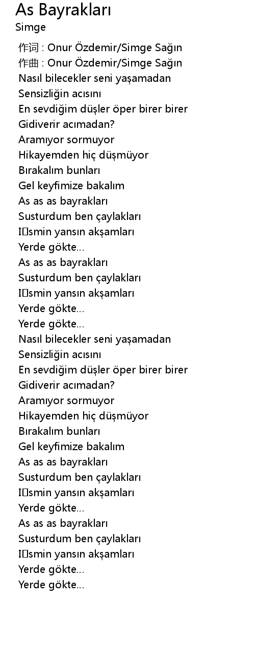 | [00:01.000] | 作曲 : Onur Özdemir/Simge Sağın |