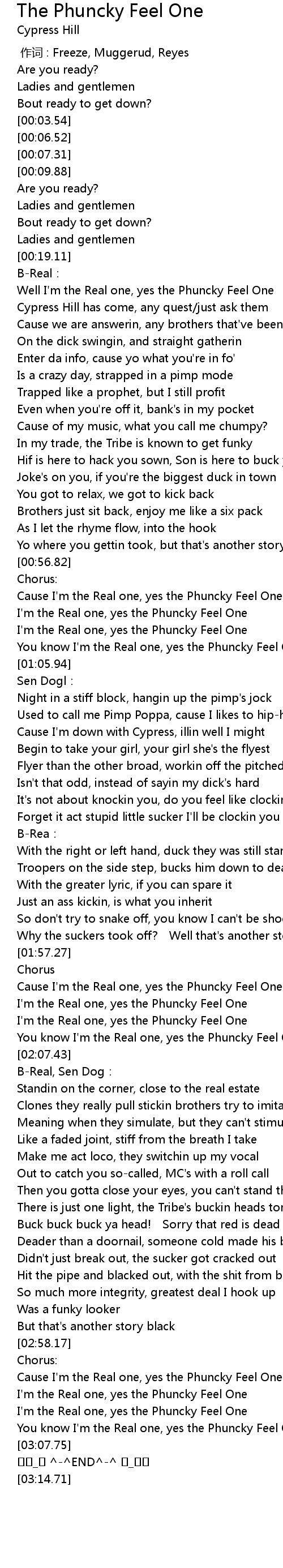 | [00:57.16] | Cause I'm the Real one, yes the Phuncky Feel One |