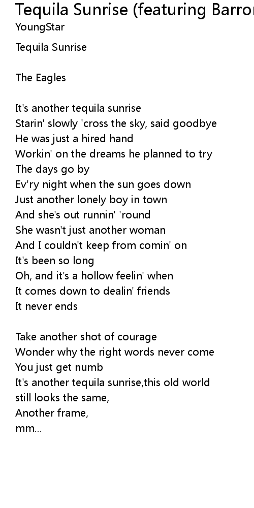 Tequila Sunrise (featuring Barron Ricks) - Clean LP Version Lyrics