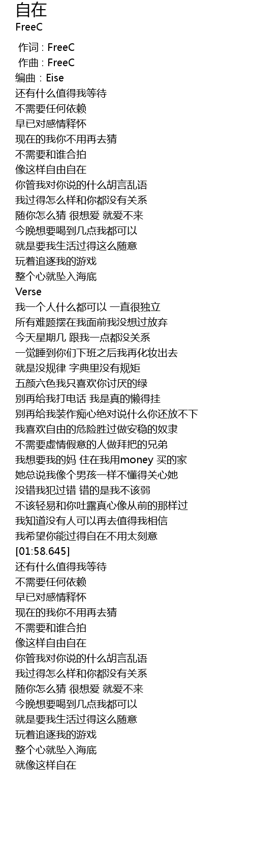 | [01:56.393] | 我希望你能过得自在不用太刻意 |