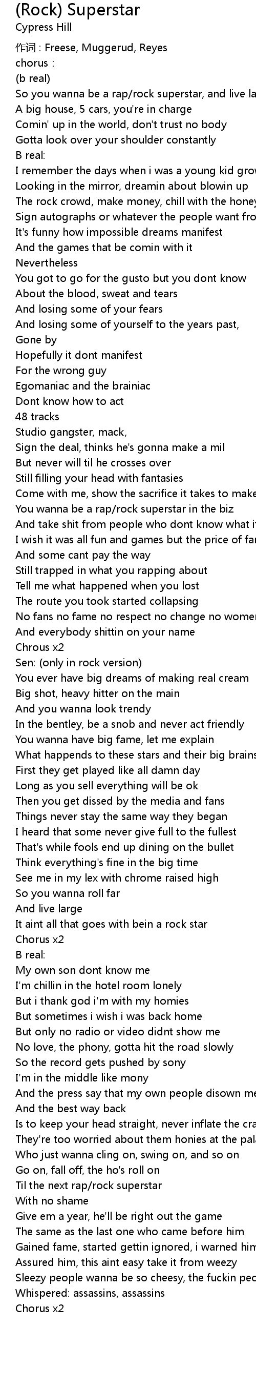 | So you wanna be a rap rock superstar, and live large | |