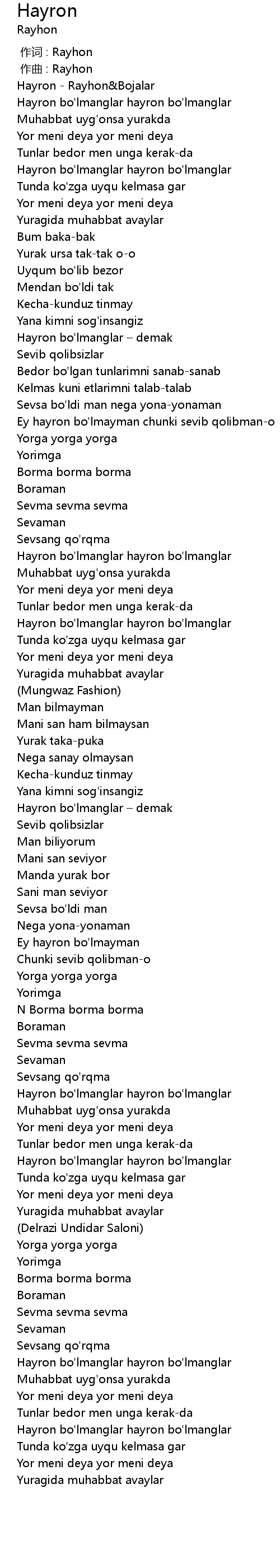 | [00:10.79] | Hayron - Rayhon&Bojalar |