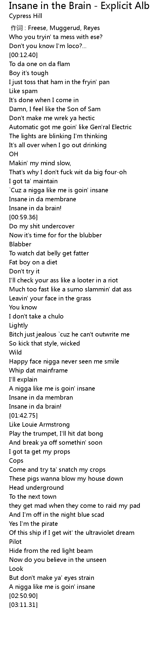 | [01:41.91] | Insane in da brain! |