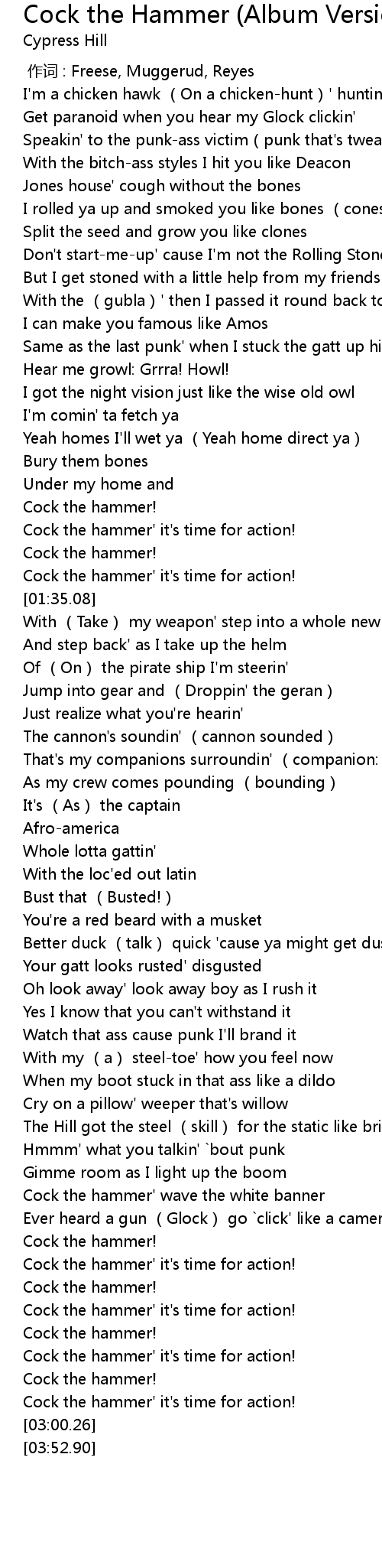 | [01:31.79] | Cock the hammer' it's time for action! |