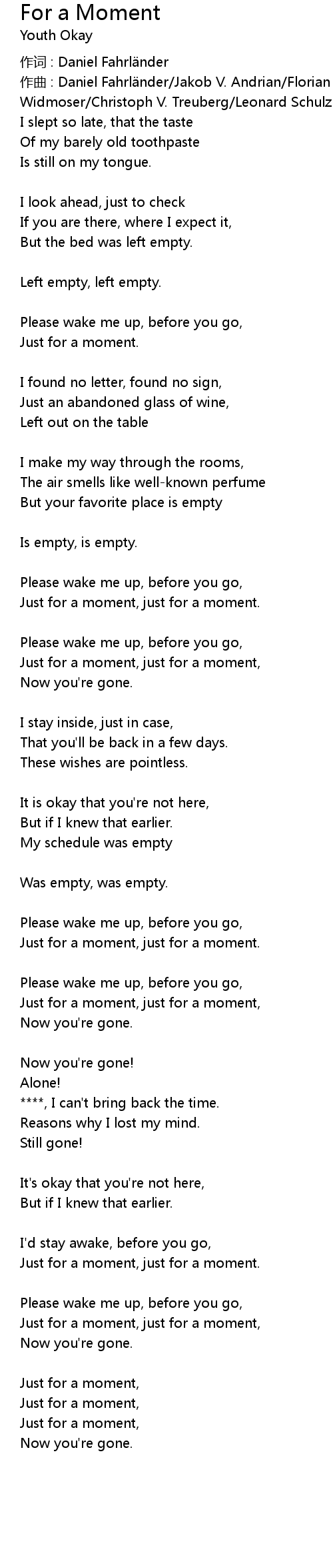 | Please wake me up, before you go, | |