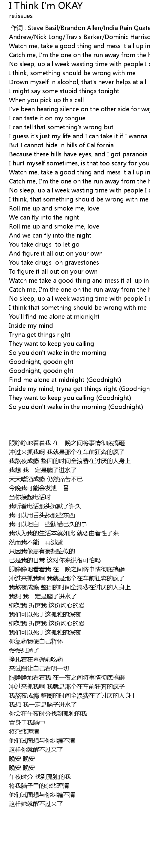 | [00:00.000] | 作词 : Steve Basil/Brandon Allen/India Rain Quateman/Rory Andrew/Nick Long/Travis Barker/Dominic Harrison/Colson Baker |