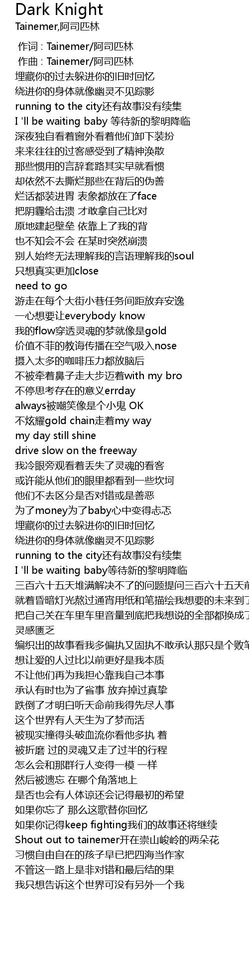 | [00:00.000] | 作词 : Tainemer/阿司匹林 |