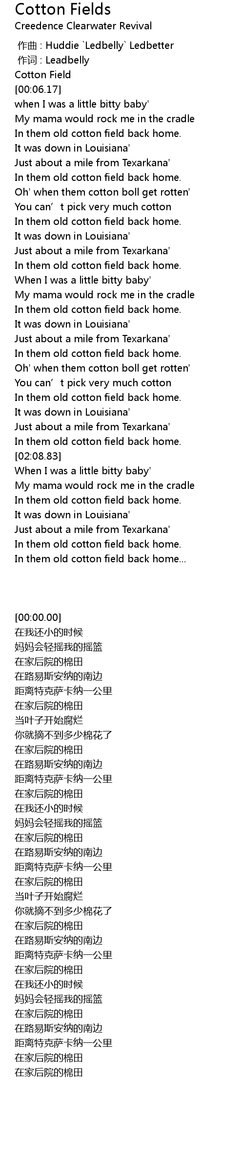 | [00:40.72] | In them old cotton field back home. |