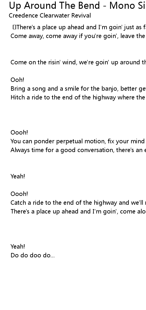 | Come on the risin' wind, we're goin' up around the bend. | |
