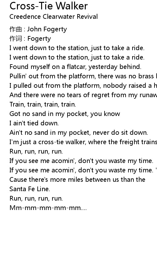 | I'm just a cross-tie walker, where the freight trains run. | |