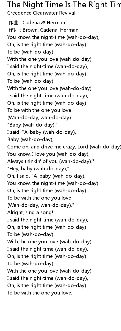 | [02:16.22] | I said the night-time (wah-do-day), |