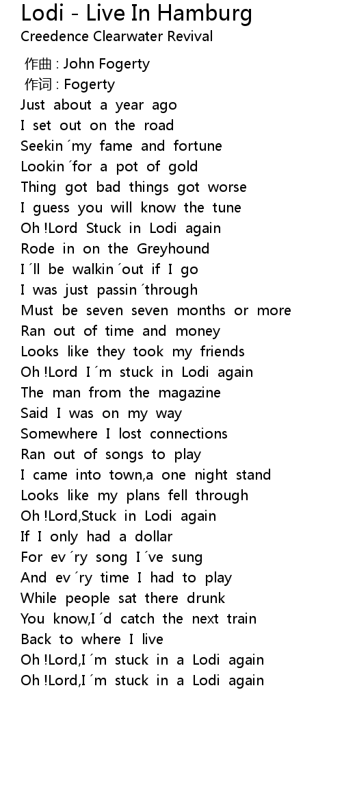 | [02:33.319] | Oh !Lord,I ´m stuck in a Lodi again |