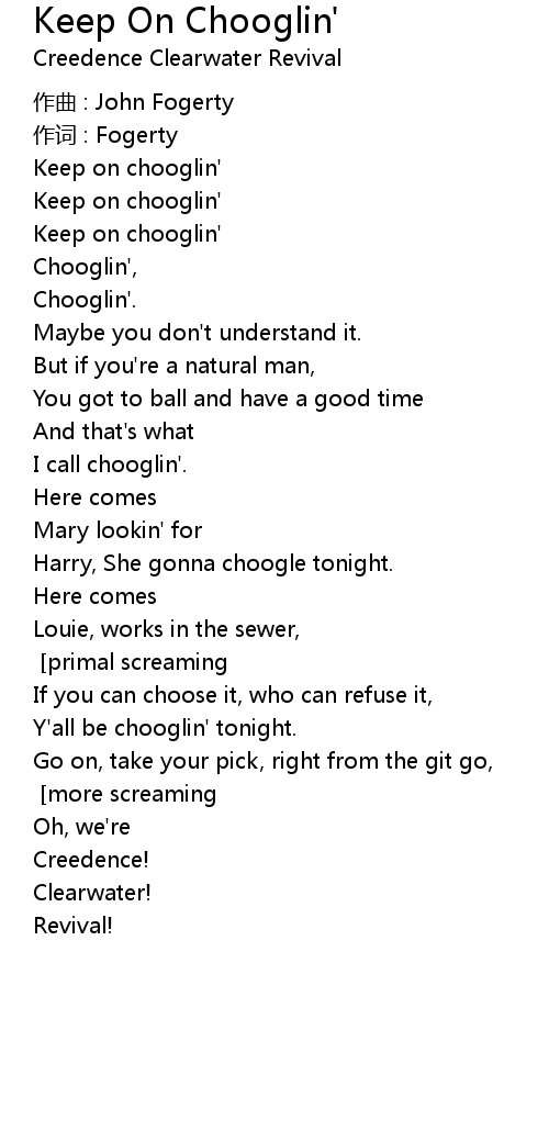 | Song | Keep On Chooglin' |