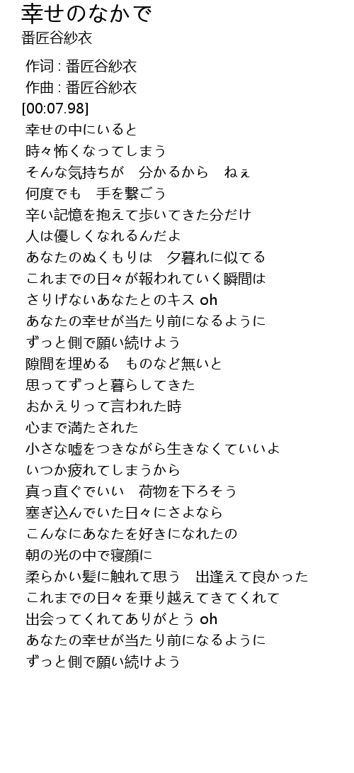 | [00:00.00] | 作词 : 番匠谷紗衣 |
