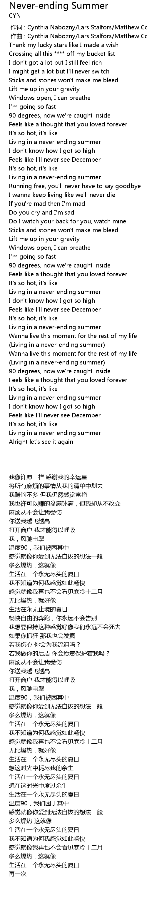 | [00:00.00] | 作词 : Cynthia Nabozny/Lars Stalfors/Matthew Compton/Jesse St. John |