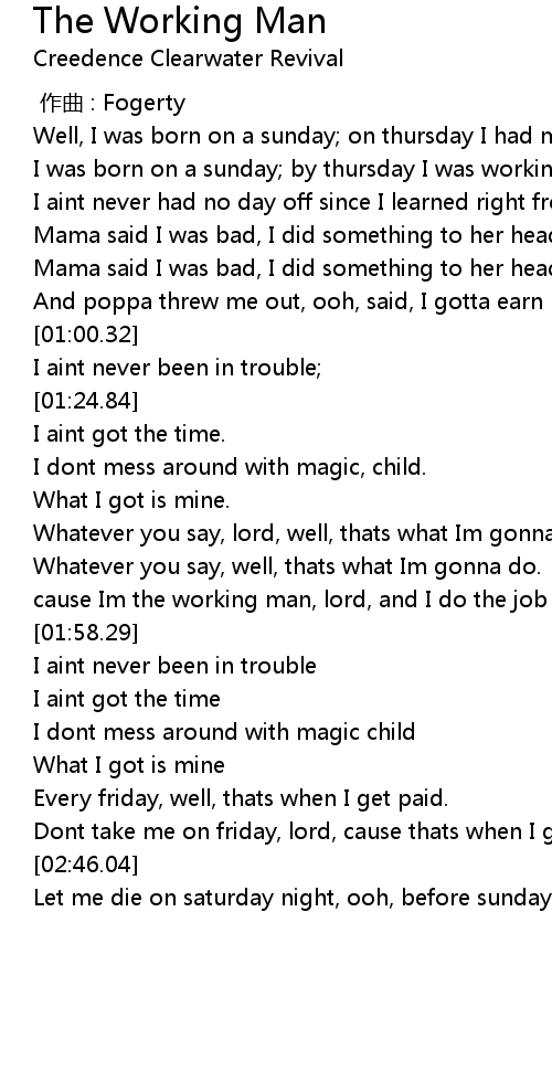 | [01:48.44] | cause Im the working man, lord, and I do the job for you. |