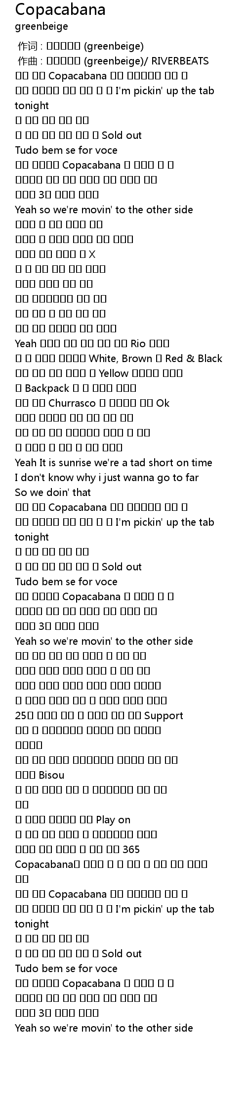 | [01:38.690] | 우린 떠나 Copacabana 다른 멍청이들은 재낀 채 |