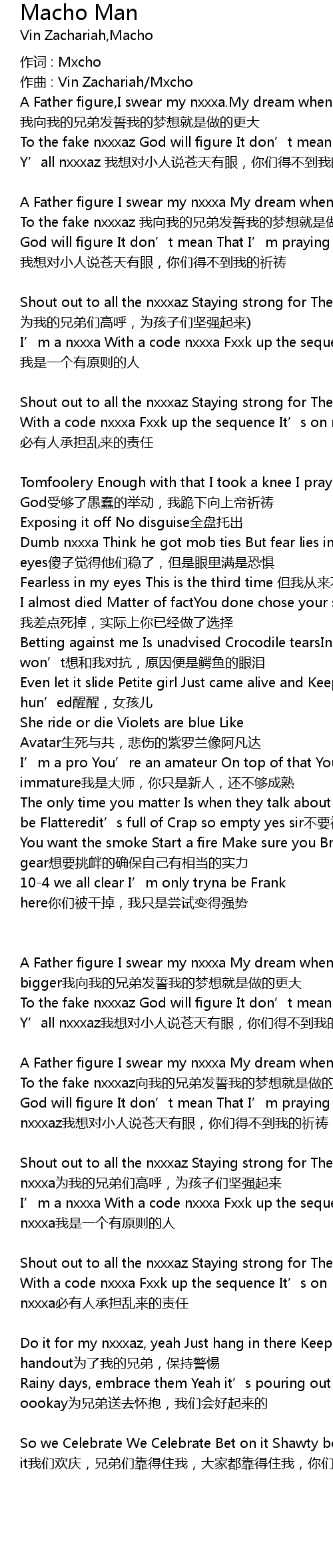 | I' m a nxxxa With a code nxxxa Fxxk up the sequence It' s on nxxxa wo shi yi ge you yuan ze de ren | |