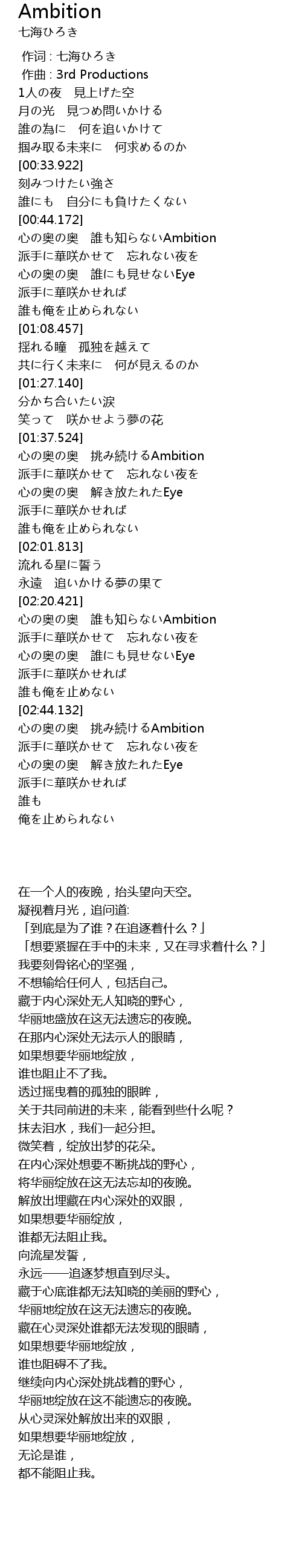 | [01:37.796] | 心の奥の奥 挑み続けるAmbition |