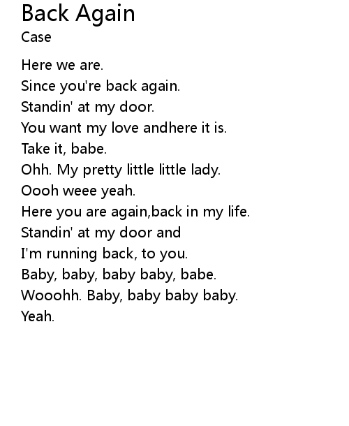 | Song | Back Again |