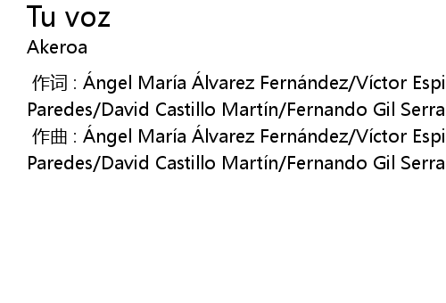 | [00:00.00-1] | zuo qu : Á ngel Mari a Á lvarez Ferna ndez Vi ctor Espinosa G de Paredes David Castillo Marti n Fernando Gil Serrano |