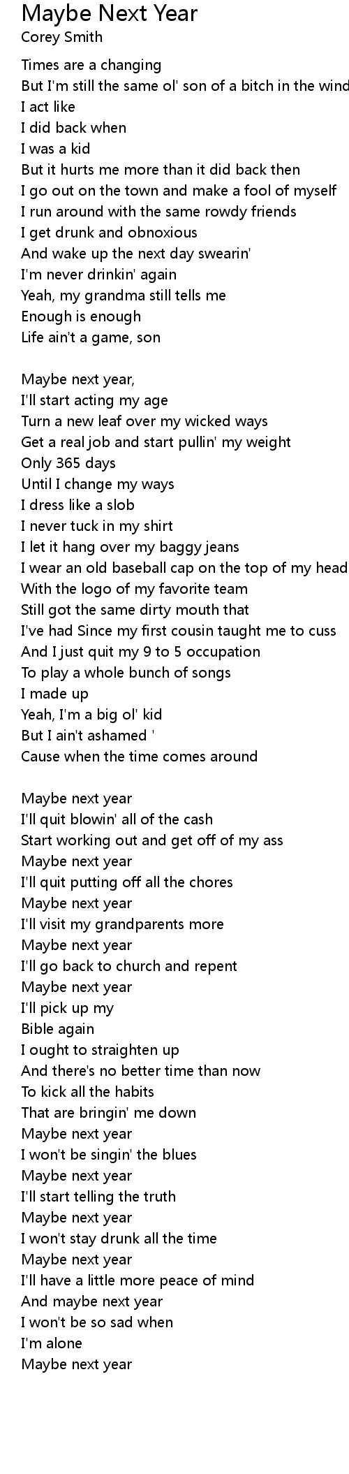 Maybe next year, |