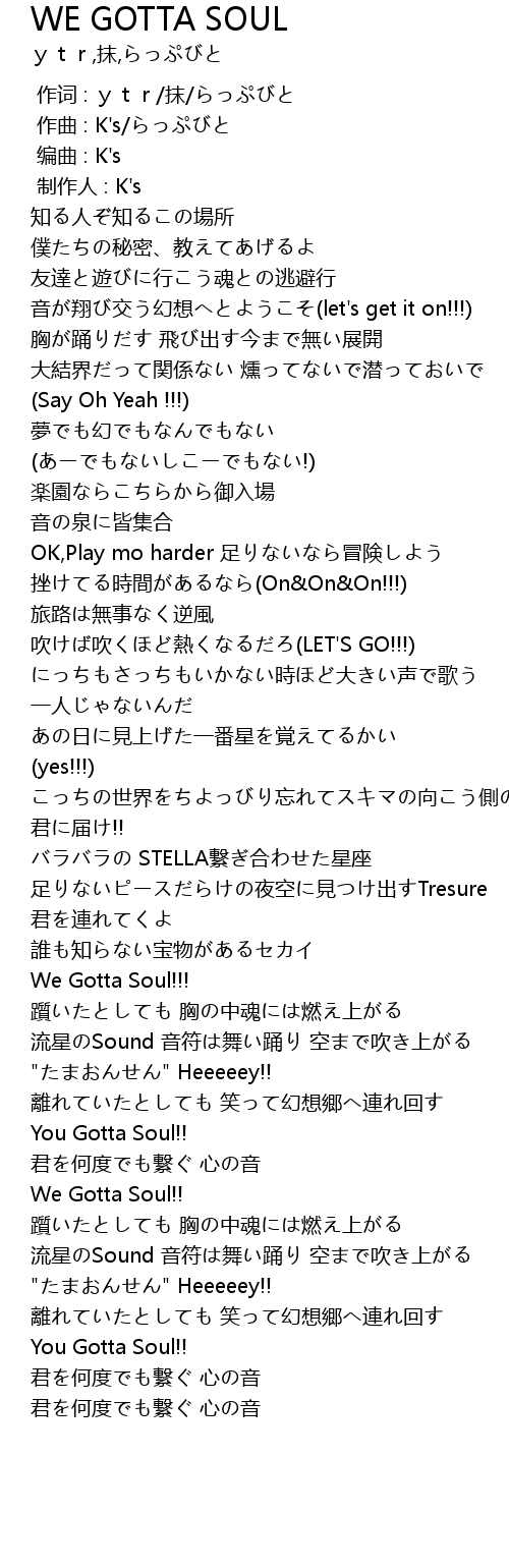 | [00:54.698] | 吹けば吹くほど熱くなるだろ(LET'S GO!!!) |