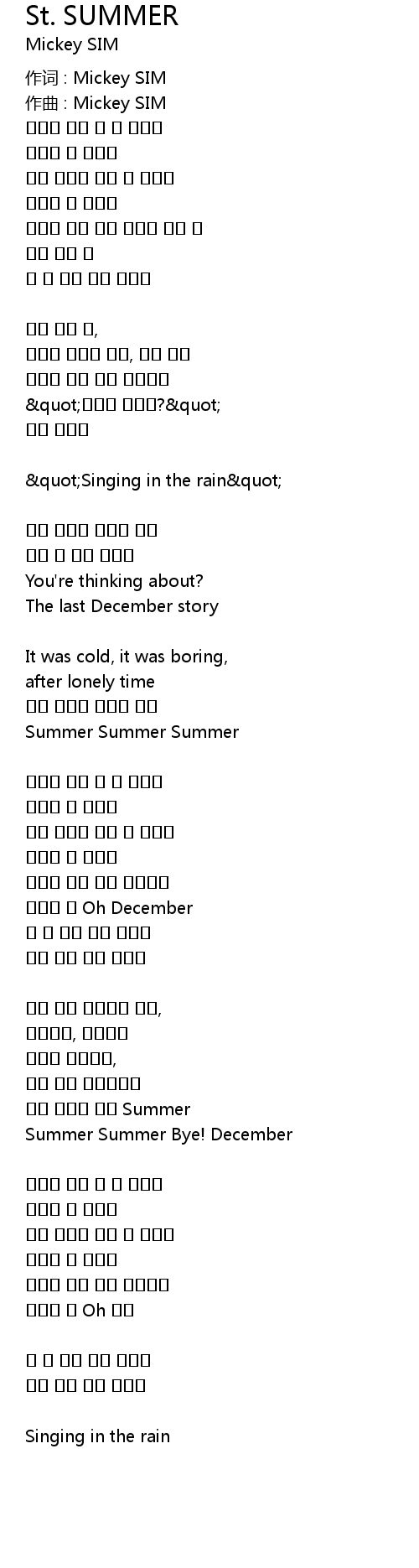 作词 : Mickey SIM |