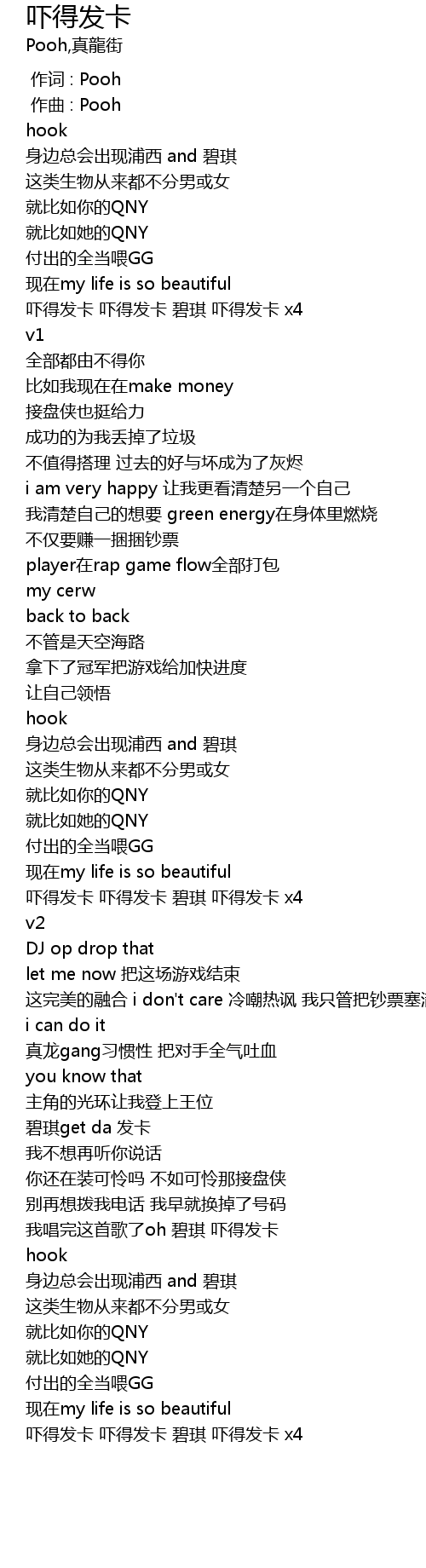 | [00:00.000] | 作词 : Pooh |
