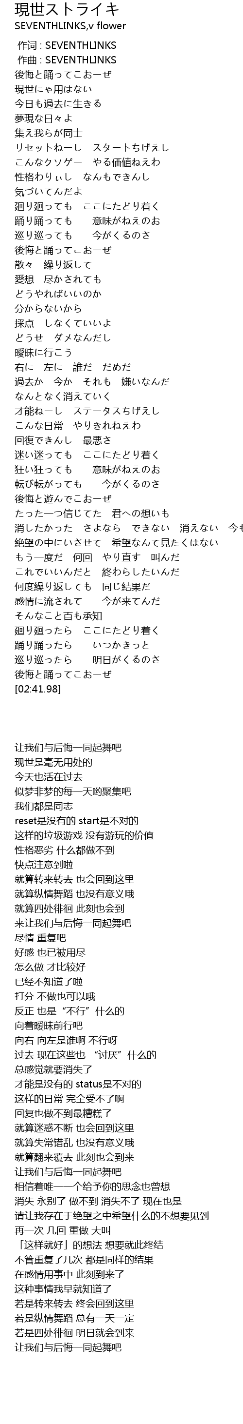 | [01:48.76] | 後悔と遊んでこおーぜ |