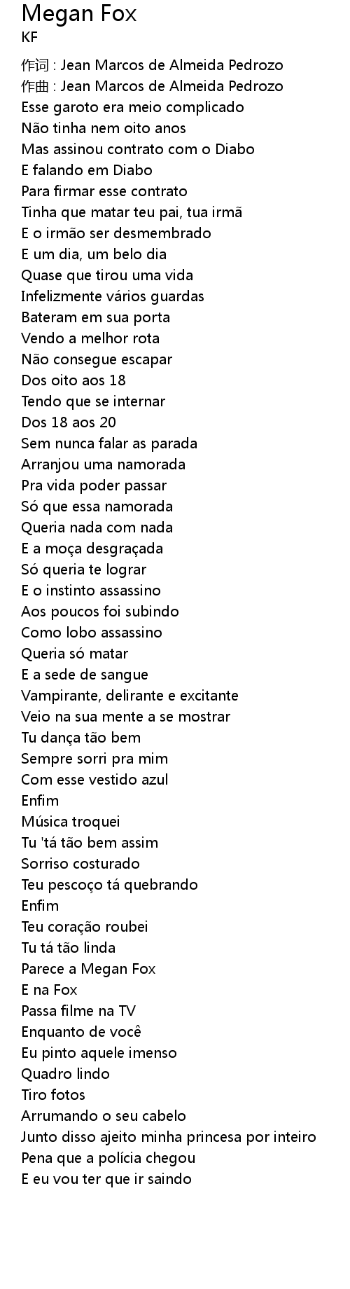 | 作词 : Jean Marcos de Almeida Pedrozo | |