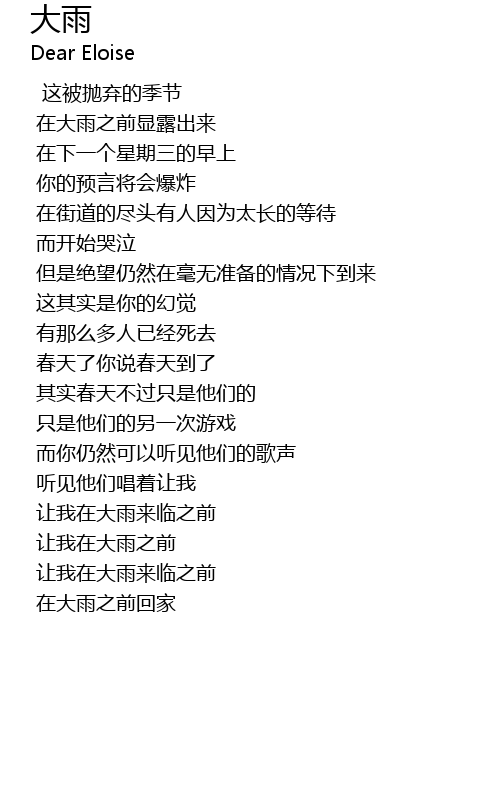 | ràng wǒ zài dà yǔ lái lín zhī qián | |