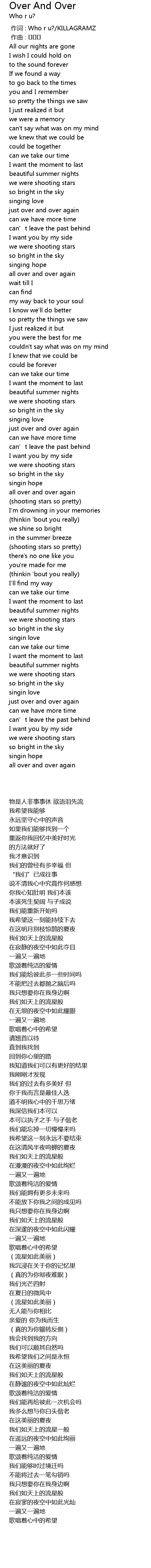 | [00:00.000] | zuò cí : Who r u? KILLAGRAMZ |