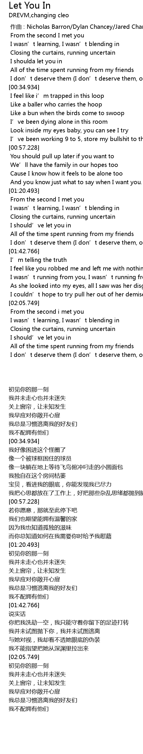 | [00:00.000] | zuò qǔ : Nicholas Barron Dylan Chancey Jared Chancey |