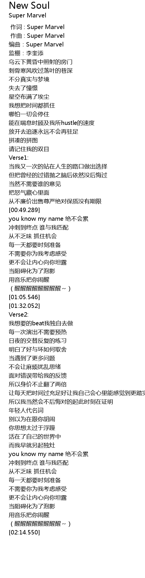 | [00:01.000] | zuò qǔ : Super Marvel |