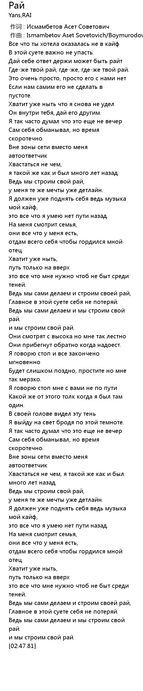 作词 : Исмамбетов Асет Советович |