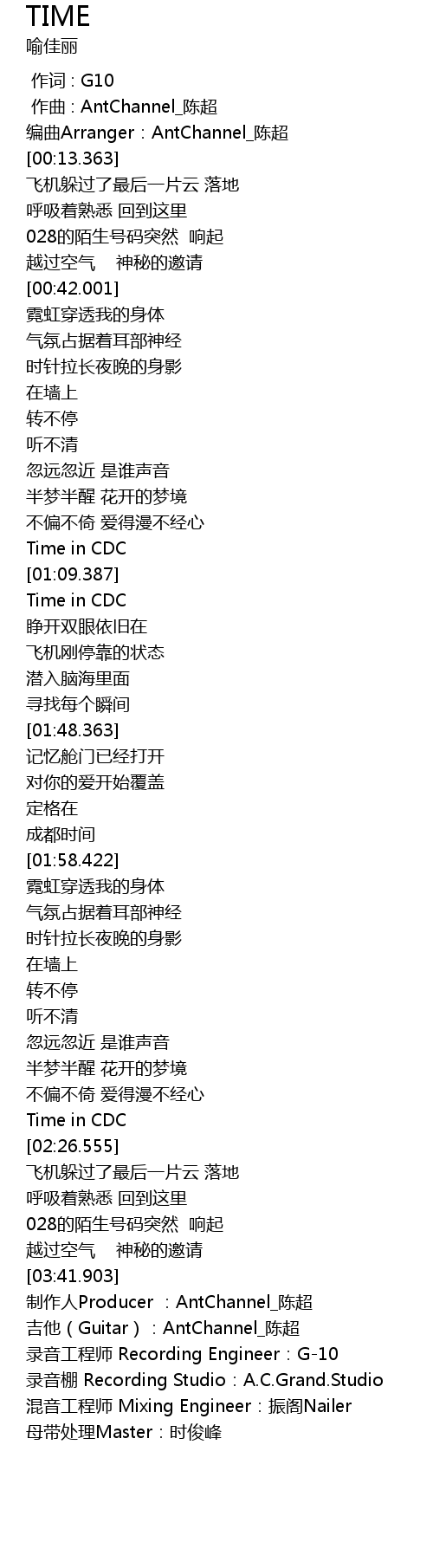 | [03:43.093] | 制作人Producer :AntChannel_陈超 |
