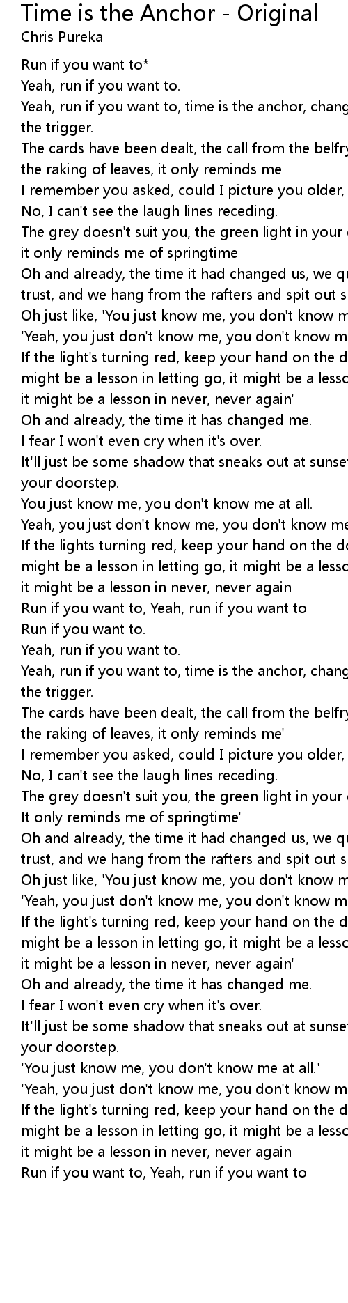 Yeah, run if you want to, time is the anchor, change is the constant, love is the trigger. |