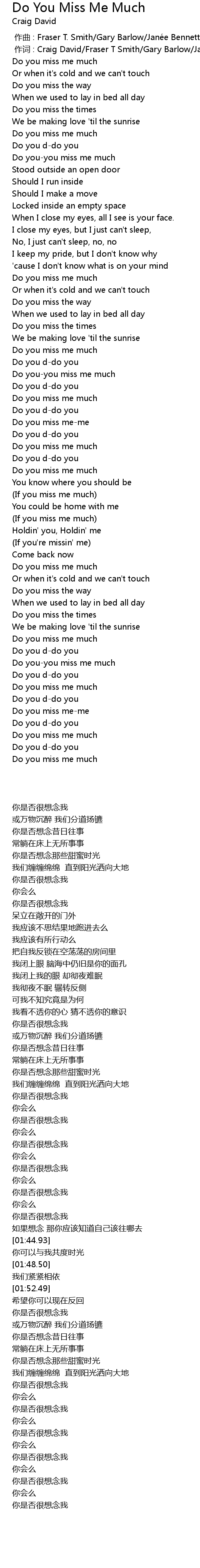| [01:41.48] | Do you miss me much |